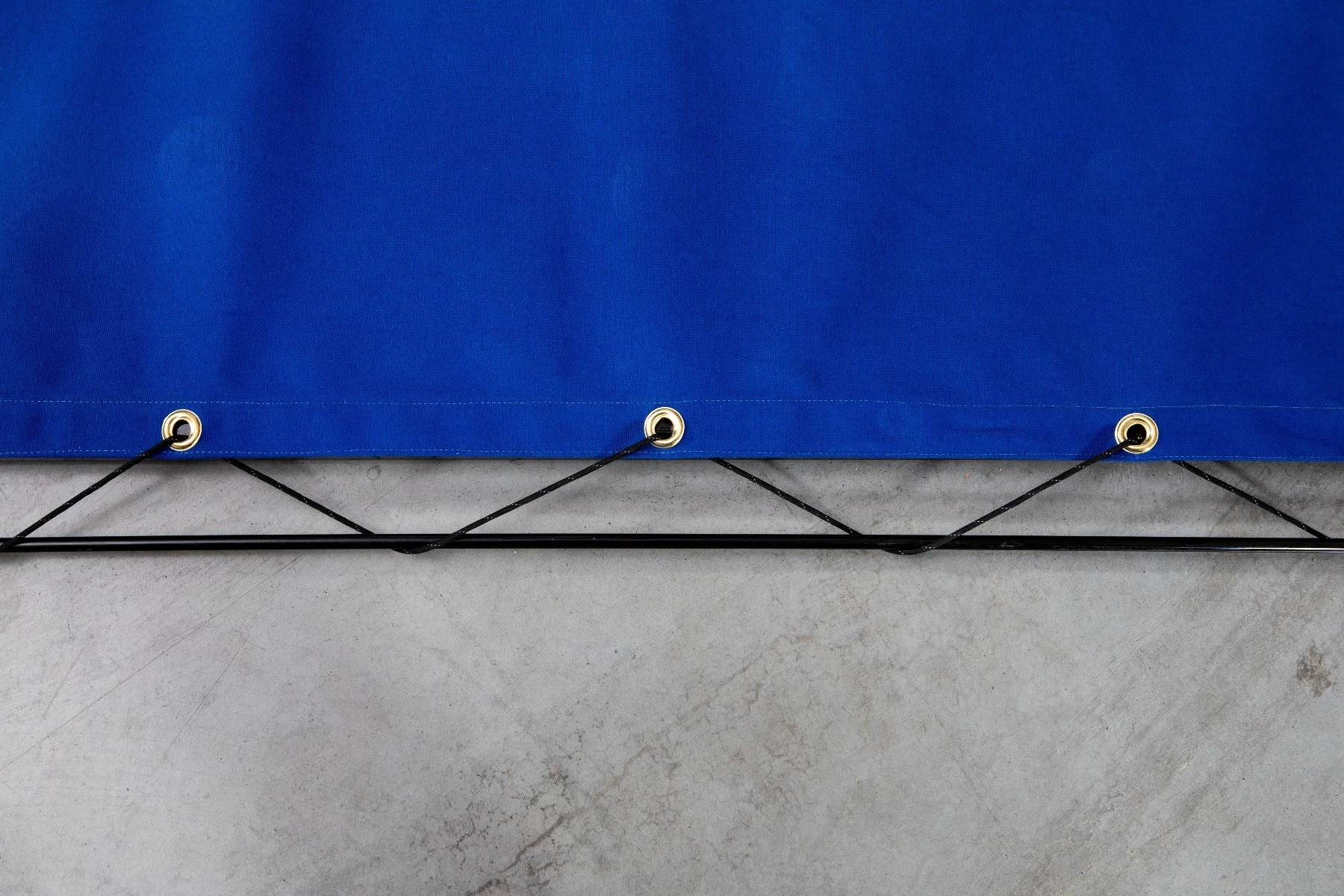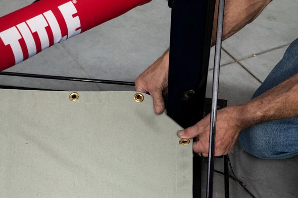 This canvas cover has reinforced seams and thick brass grommets every 12 inches. Comes with a tie-down lash cord!